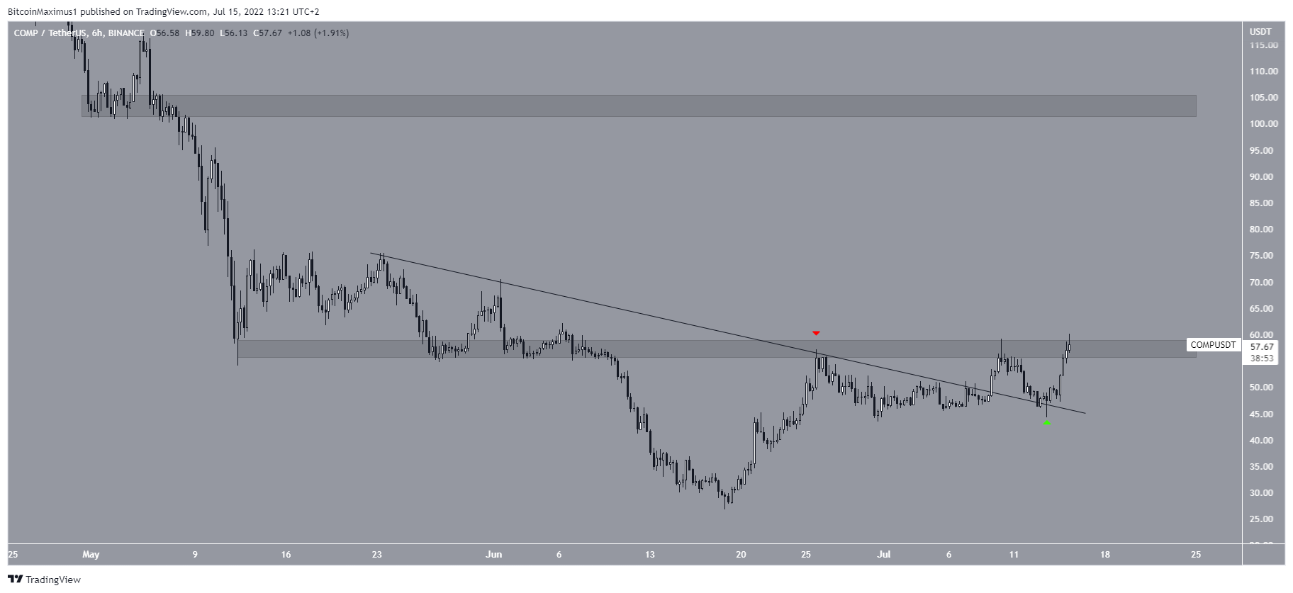 Atualmente, o COMP está fazendo outra tentativa de sair da área de resistência de US$ 58. Se for bem-sucedido, a próxima resistência mais próxima seria de US$ 105.