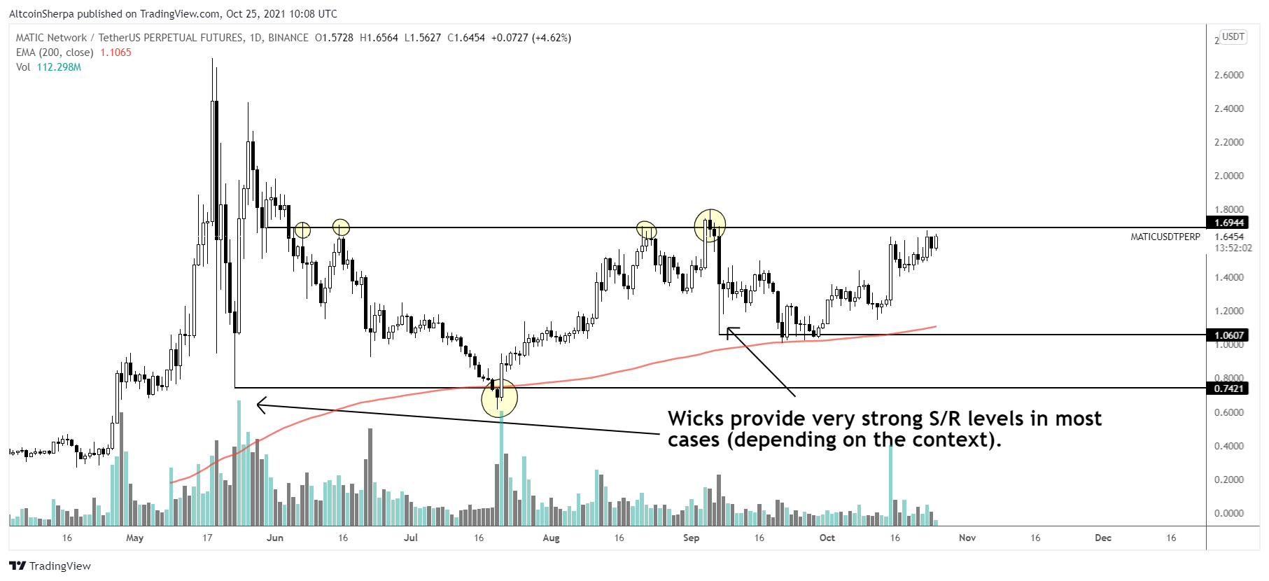 O trader de criptomoedas @Altcoinsherpa traçou um gráfico sobre a MATIC, afirmando que o token logo romperá a área de resistência de US$ 1,70.