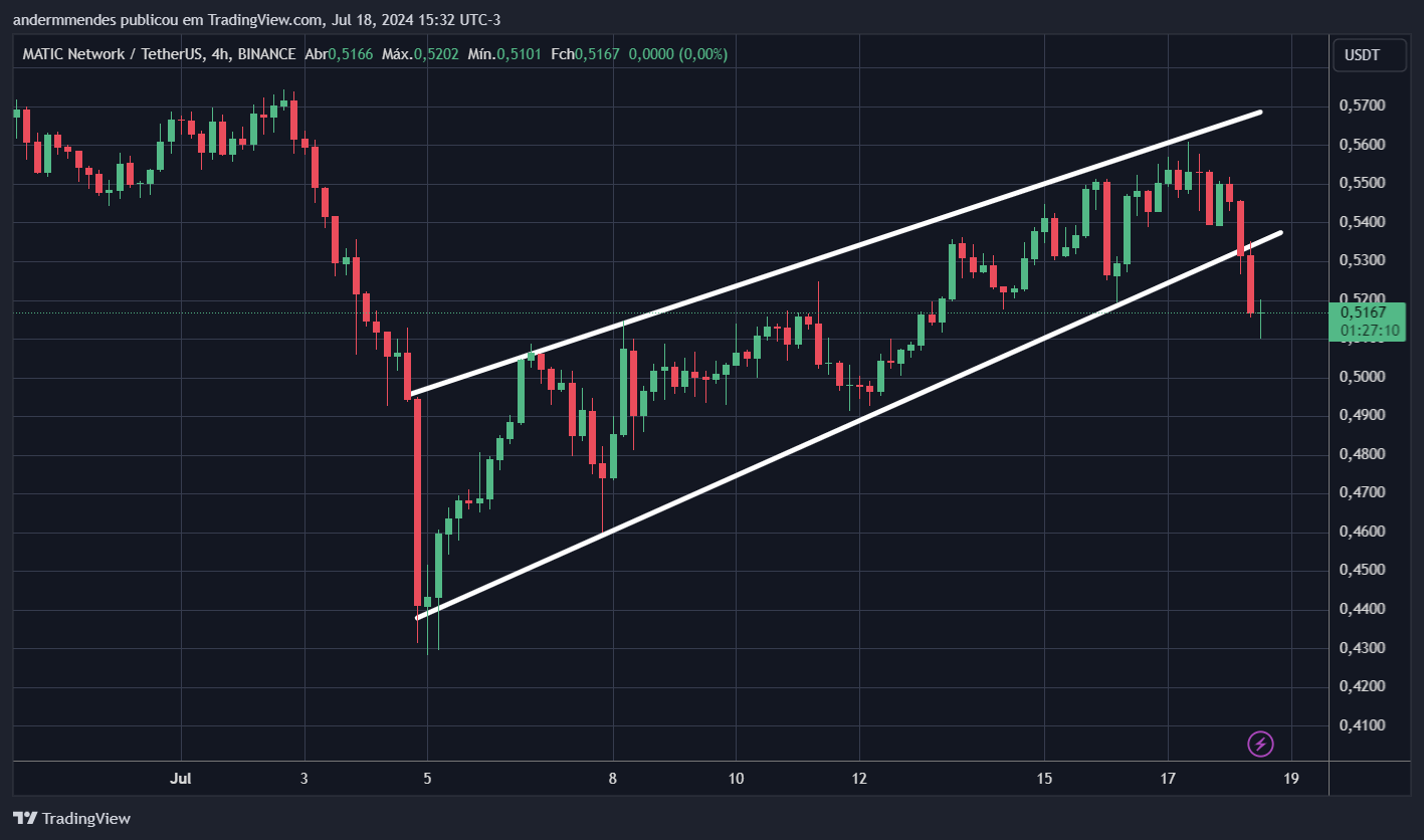 Desde então, a MATIC formou uma mínima em US$ 0,51, chegando a cair mais de 7% no acumulado das últimas 24 horas. Confira a seguir quais os cenários mais propensos para a tendência futura de preços.