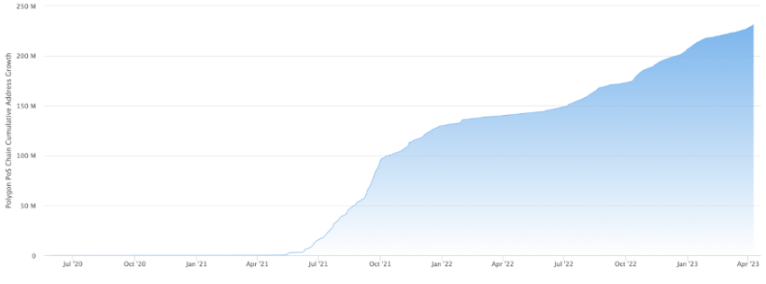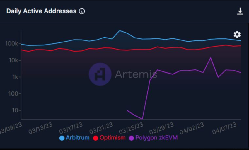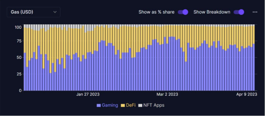 Aqui, a participação percentual do YTD subiu de 57% para 71%. Enquanto isso, os endereços ativos no domínio de jogos da Polygon tiveram uma média de 50.000 usuários entre os dias 12 de março a 11 de abril.