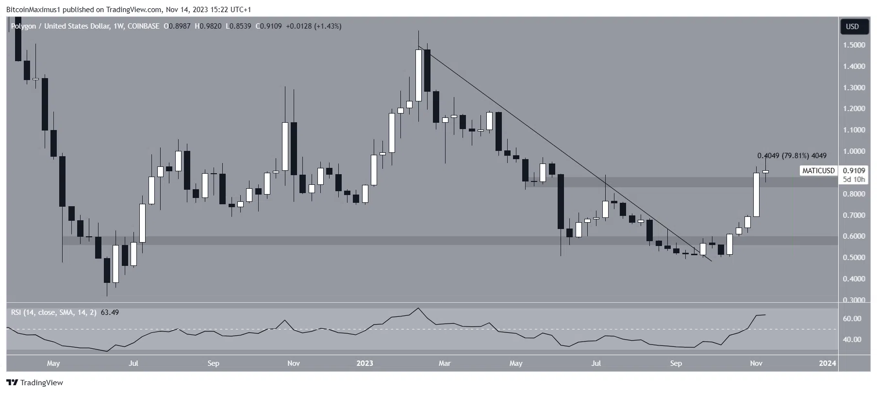 O preço da Polygon (MATIC) subiu consideravelmente nas últimas cinco semanas, quase atingindo uma máxima de US$ 1 hoje.