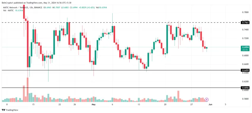 Se o preço da MATIC romper ou cair abaixo dessa faixa de preço, a consolidação será invalidada. Um rompimento faria com que a altcoin subisse para US$ 0,80, enquanto uma queda abaixo de US$ 0,64 resultaria em uma queda para US$ 0,60.