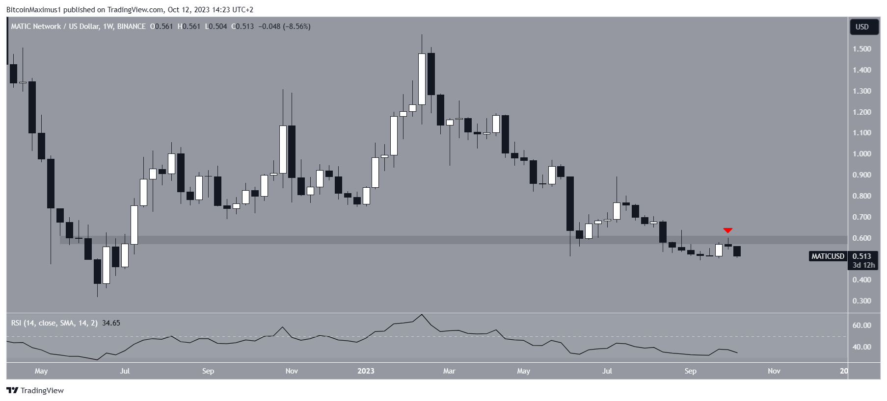 A Polygon (MATIC) criou um candle de baixa na semana passada, validando a área horizontal de US$ 0,60 como resistência.