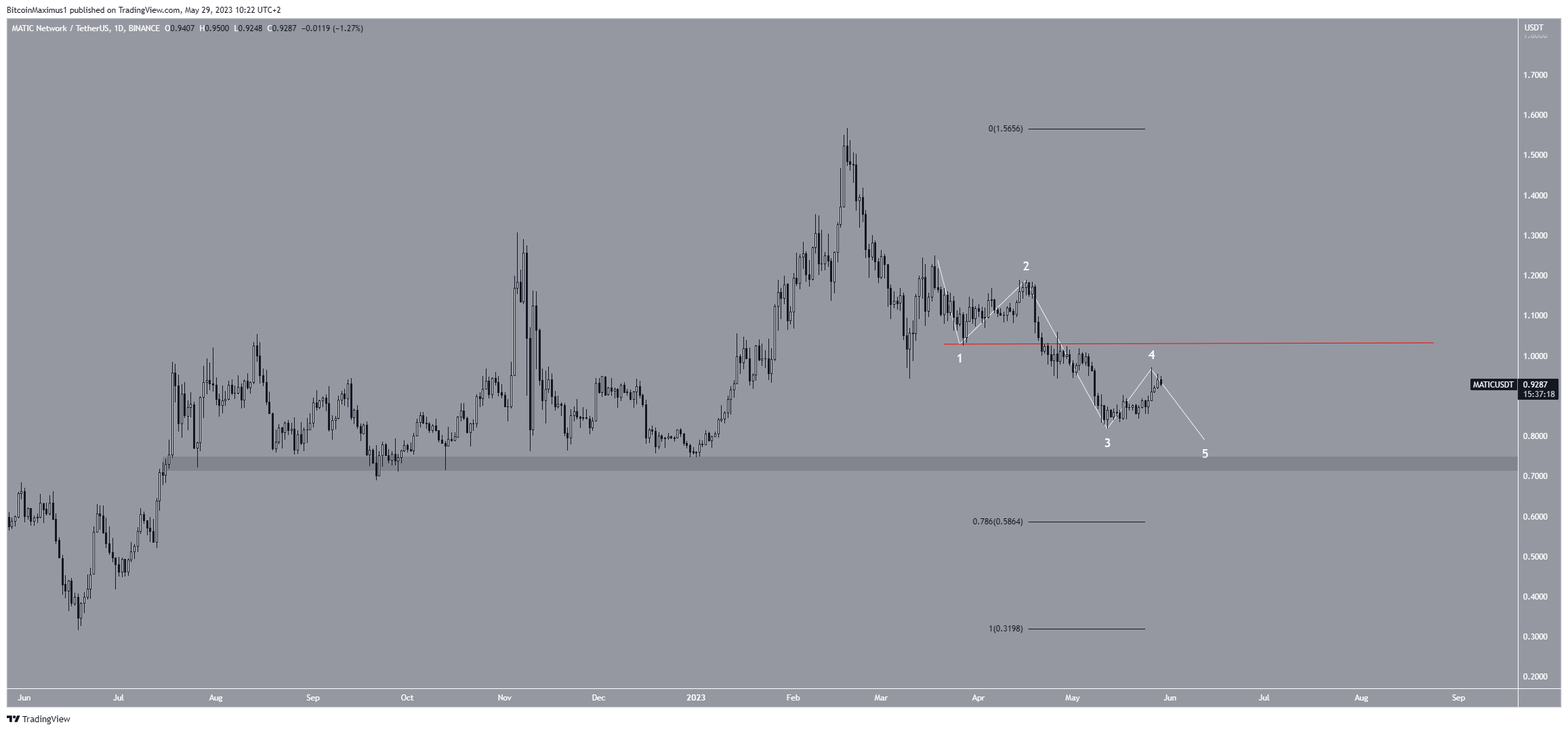 A análise técnica do gráfico diário também fornece uma previsão de preço de baixa para a Polygon, alinhando-se com as leituras do semanal. A principal razão para isso é a contagem de ondas.