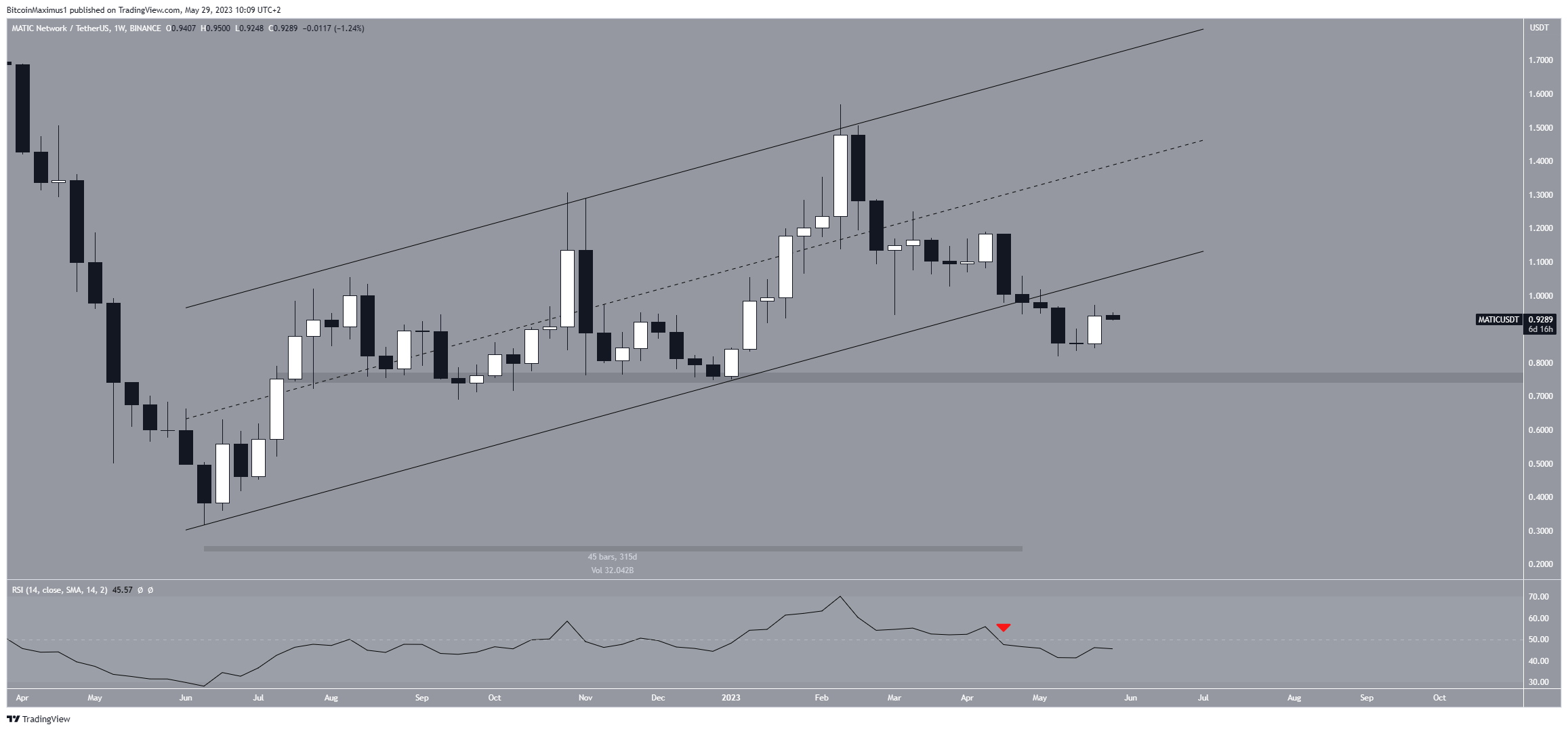 A análise técnica do gráfico semanal fornece uma perspectiva de baixa para o preço da MATIC. A principal razão para isso é que o preço caiu de um canal paralelo de alta de longo prazo em abril.