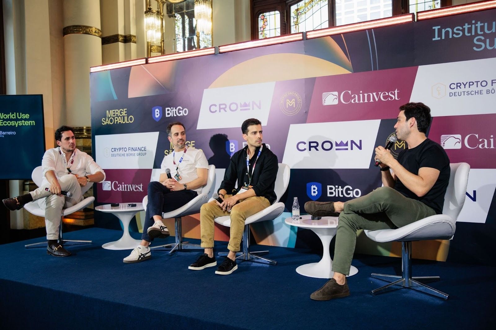 Além das entrevistas, Luis também subiu ao palco como moderador no Institutional Summit, um evento fechado para convidados. Ele liderou o painel “Stablecoins na prática: casos de uso reais no ecossistema fintech do Brasil”, reunindo Carlos Jiménez, BD e Parcerias na Rain, Pedro Barreiro, Diretor de Banking na Nomad, e Marcos Nunes, CEO da Tangem Pay.