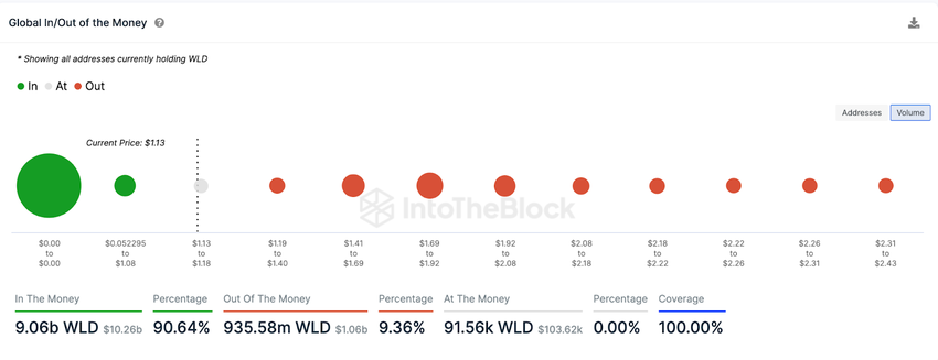 Além das tendências de dados analisadas, 90,64% de todos os portadores de Worldcoin estão no prejuízo. Portanto, com o impulso dominante de baixa em todo o ecossistema Worldcoin, há uma grande chance de que o preço do WLD caia abaixo de US$ 1.