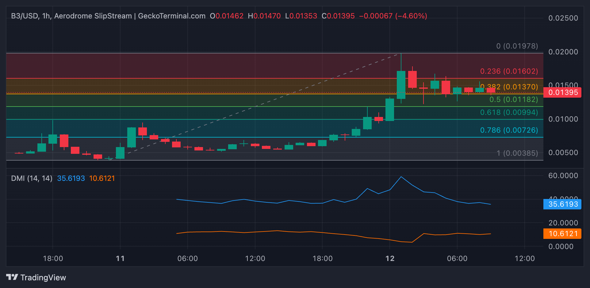 Se a tendência de alta da B3 se fortalecer, seu preço pode ultrapassar a resistência em US$ 0,016 e tentar revisitar sua máxima histórica de US$ 0,019.
