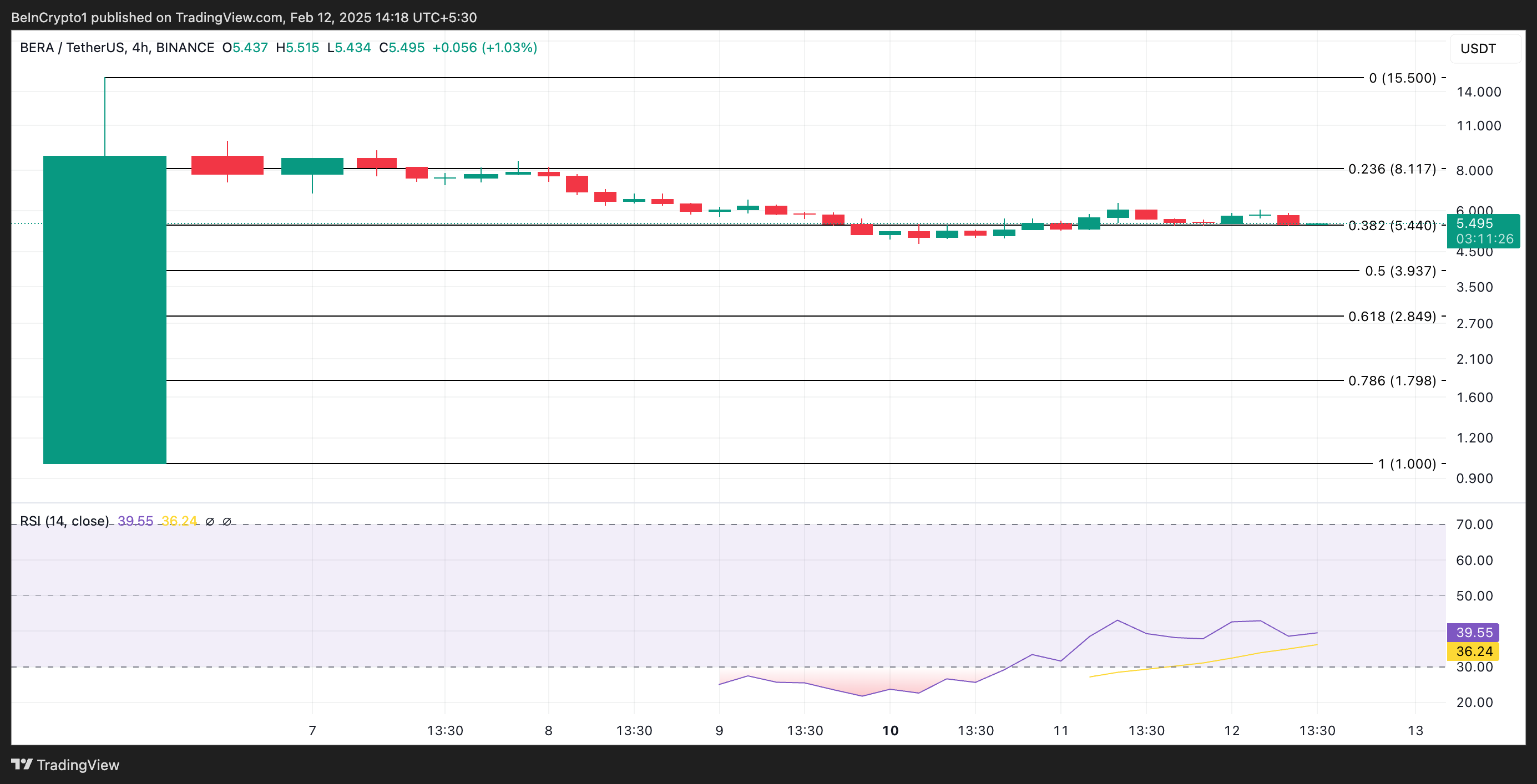 Desde seu lançamento, a BERA da Berachain teve um desempenho fraco, lutando para ganhar impulso em meio a condições de mercado desafiadoras. Atualmente negociada a US$ 5,49, ela experimentou uma queda de 8,4% no preço nas últimas 24 horas.
