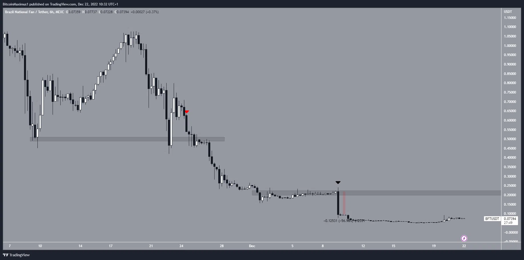 Sponsored SponsoredPouco depois, o BFT caiu da área de suporte horizontal de US$ 0,50 e acelerou sua taxa de queda.