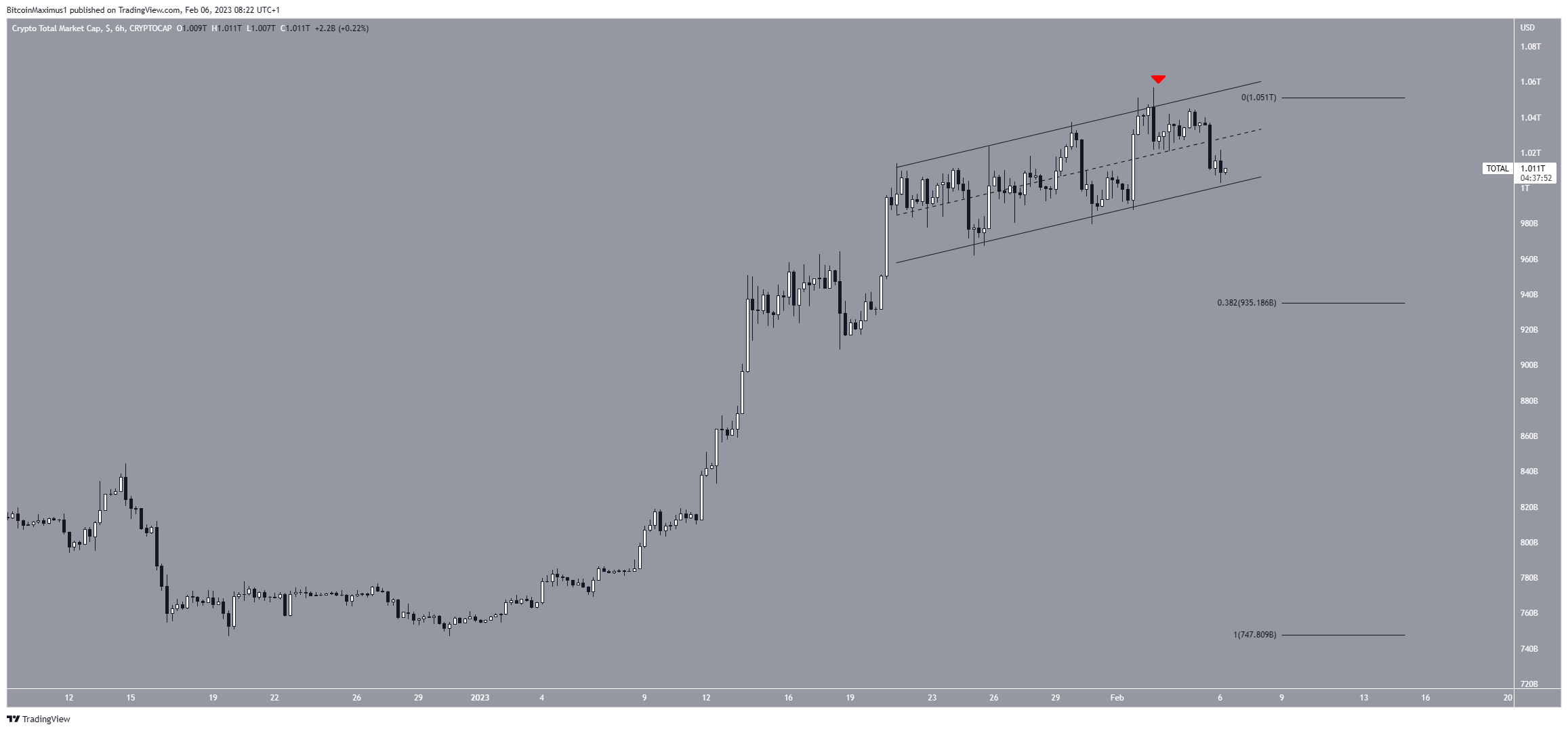 O TOTALCAP está em um canal paralelo de alta desde 23 de janeiro. Esses canais são considerados padrões de baixa, o que significa que eles levam a quedas na maioria das vezes.