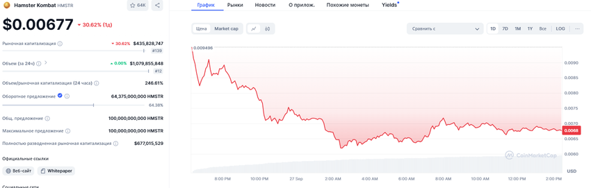 Os temores de que o preço inicial dos tokens HMSTR fosse de US$ 0,01 eram justificados. Imediatamente após o início da negociação, esse valor começou a cair.