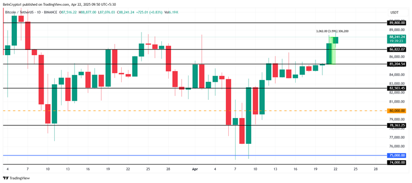 Por outro lado, se o momentum enfraquecer ou os investidores começarem a vender, o Bitcoin pode recuar para US$ 86.822. A incapacidade de manter esse nível pode invalidar a perspectiva otimista e potencialmente empurrar o preço para US$ 85.204, causando uma reversão nos ganhos recentes.
