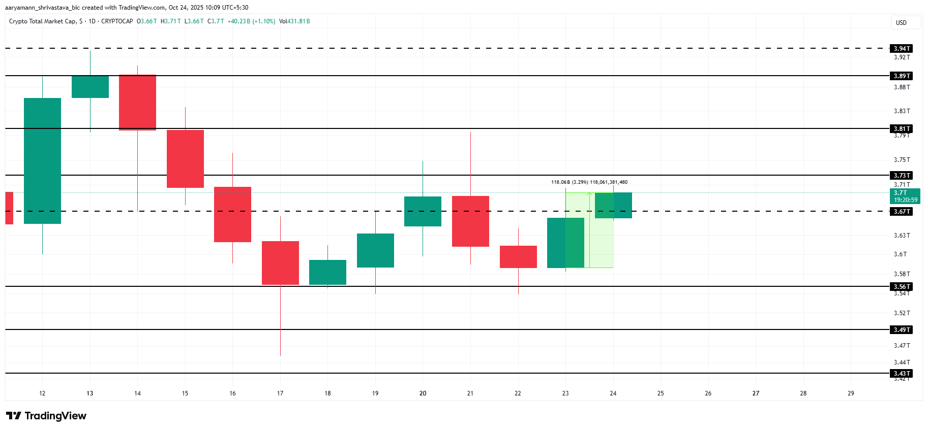 Uma quebra bem-sucedida acima de US$ 3,73 trilhões pode abrir caminho para uma alta rumo a US$ 3,81 trilhões nos próximos dias. No entanto, a manutenção desse impulso dependerá em grande parte do comportamento dos investidores e do volume de negociações. Uma forte pressão de compra confirmaria o sentimento otimista, incentivando novas entradas e sustentando o crescimento contínuo de todo o mercado.