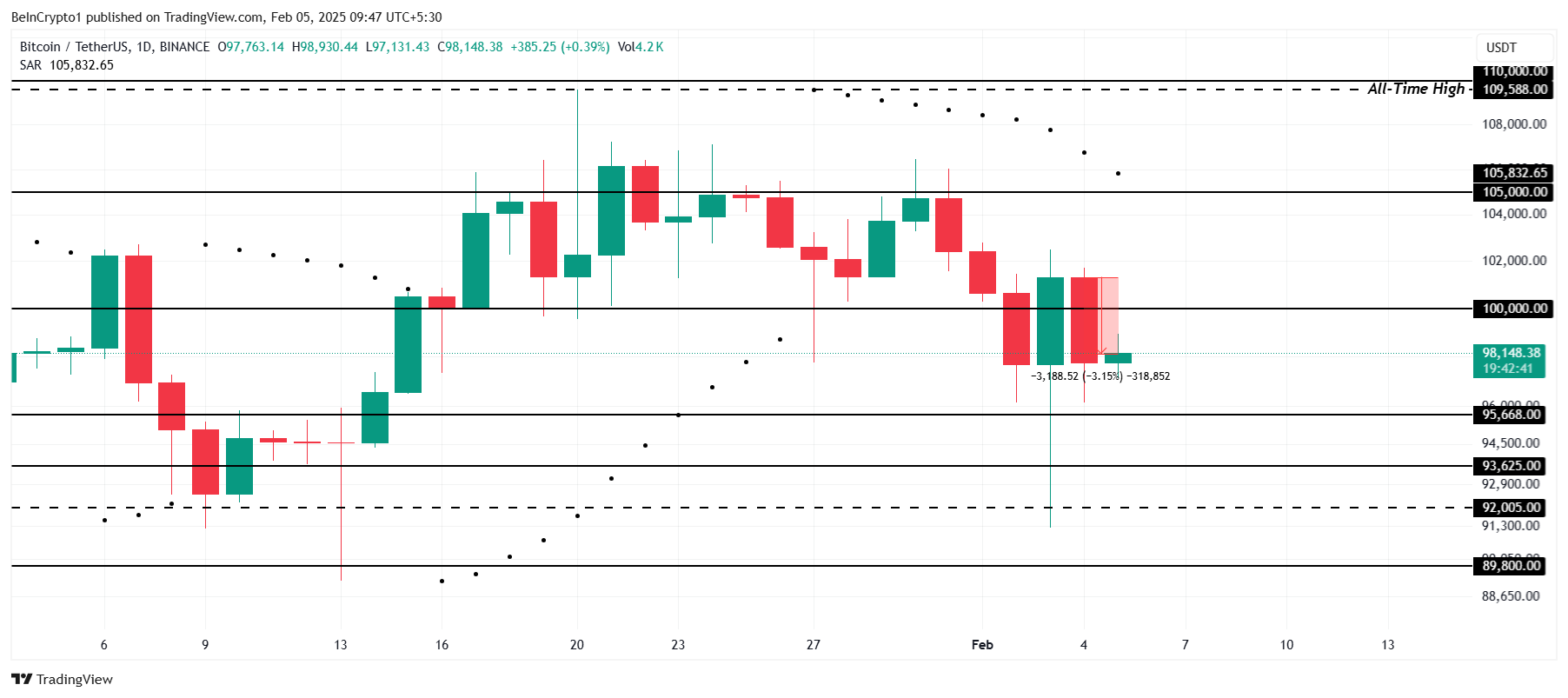 O preço do Bitcoin caiu 3,15%, sendo negociado a US$ 98.148. A principal criptomoeda tem lutado para manter o suporte de US$ 100 mil, e essa dificuldade contínua pode indicar uma fase de consolidação de preços.