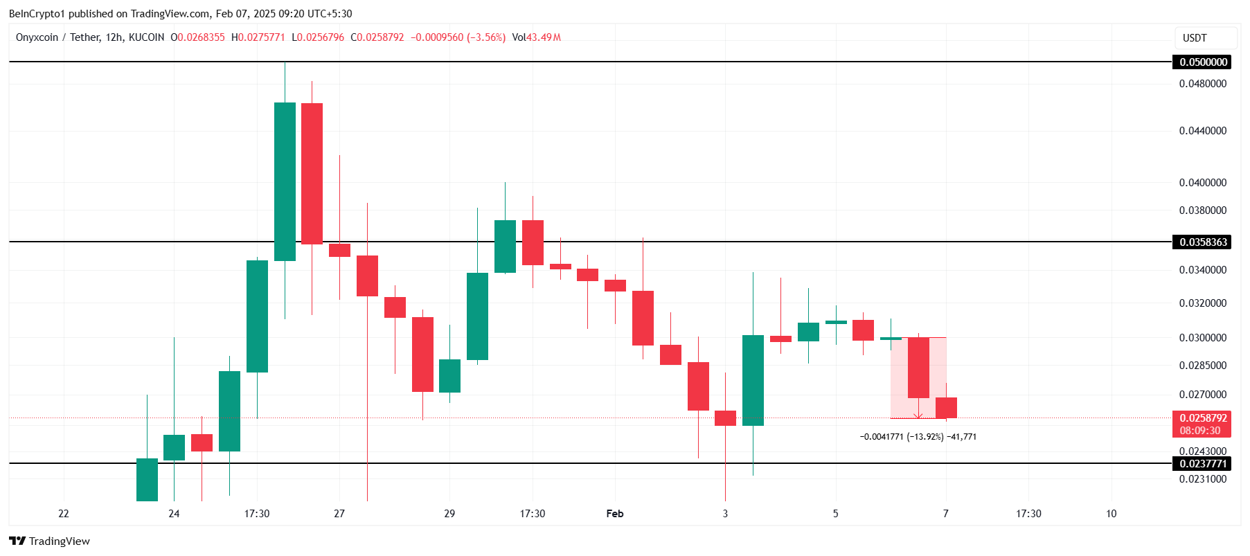 Atualmente negociada a US$0,0258, a XCN ainda se mantém acima de seu suporte crucial em US$0,0237. No entanto, a pressão vendedora contínua pode empurrar a altcoin abaixo desse nível. Caso isso ocorra, o ativo pode enfrentar novas perdas, aumentando o sentimento de baixa. Um rompimento abaixo de US$0,0237 pode desencadear mais vendas, intensificando os riscos de queda.