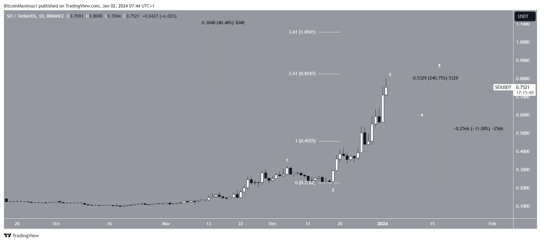 A SEI subiu rapidamente desde 18 de dezembro. O movimento foi parabólico, levando o preço a um novo recorde de US$ 0,80 nesta terça-feira (2).