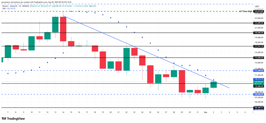 O BTC está atualmente preso em uma tendência de baixa de três semanas. No entanto, um rompimento é possível se o Bitcoin encontrar suporte suficiente tanto do mercado quanto dos investidores. O alvo imediato continua sendo o nível de resistência de US$ 112.500, que, se rompido, pode abrir caminho para uma recuperação mais forte nas próximas sessões.