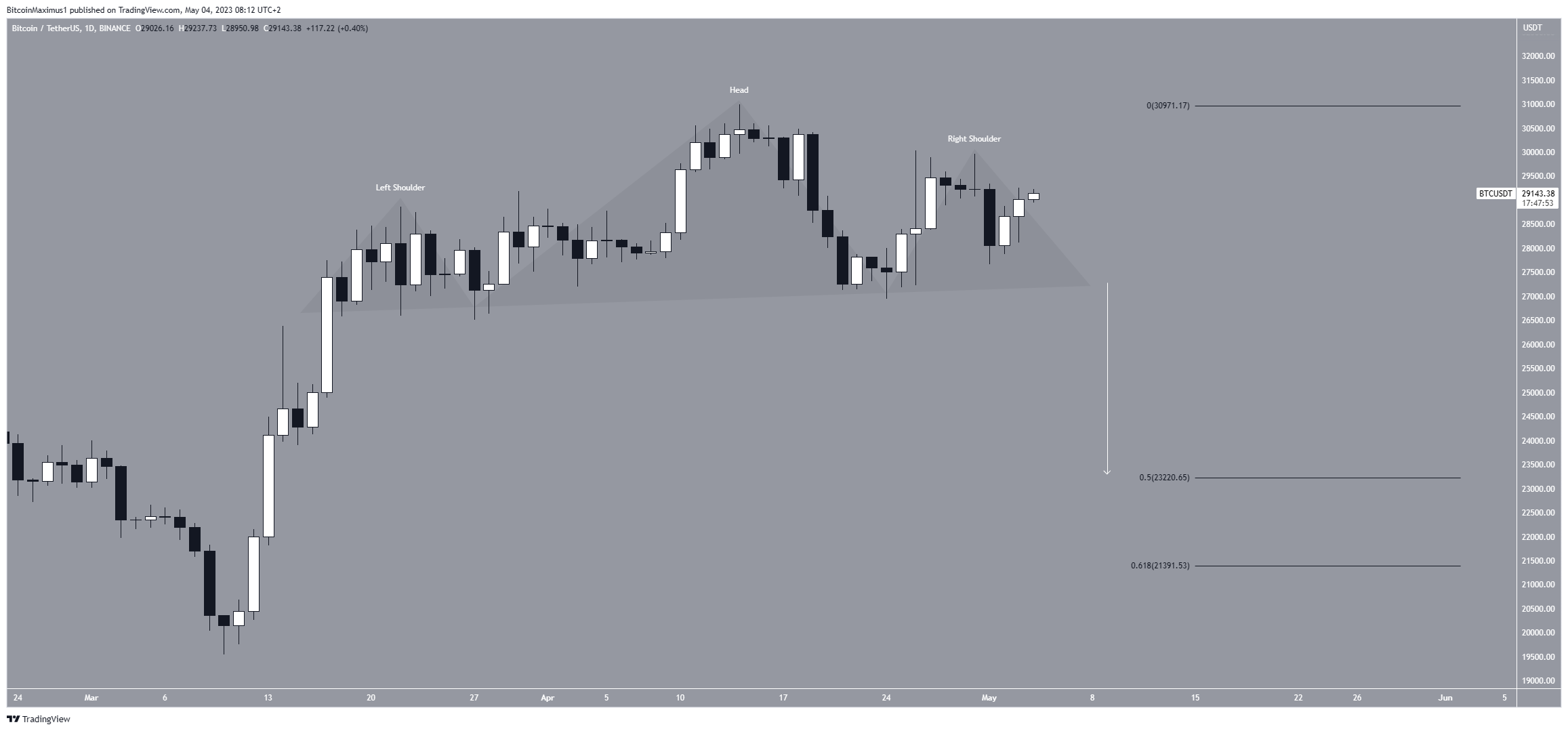 A partir de 17 de março, o preço do Bitcoin foi negociado em um padrão de ombro-cabeça-ombro. Esse padrão geralmente é visto como um sinal negativo porque geralmente precede quedas de preços.