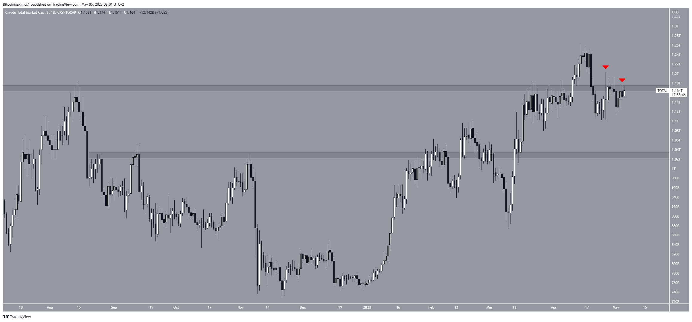 O valor total do mercado de criptomoedas (TOTALCAP) e o Bitcoin (BTC) subiram, mas ainda não invalidaram seus cenários de baixa. O preço do Toncoin (TON) está negociado dentro de um triângulo de baixa.