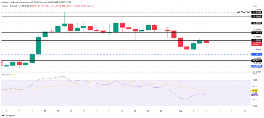 O RSI se aproximou da zona positiva, mas não conseguiu desencadear o impulso de alta necessário para que o preço do Bitcoin subisse. Apesar da falta de ação imediata no preço, indicadores mais amplos do mercado sugerem que o Bitcoin pode se recuperar, levando o preço para US$ 117.261 ou possivelmente mais alto nos próximos dias.