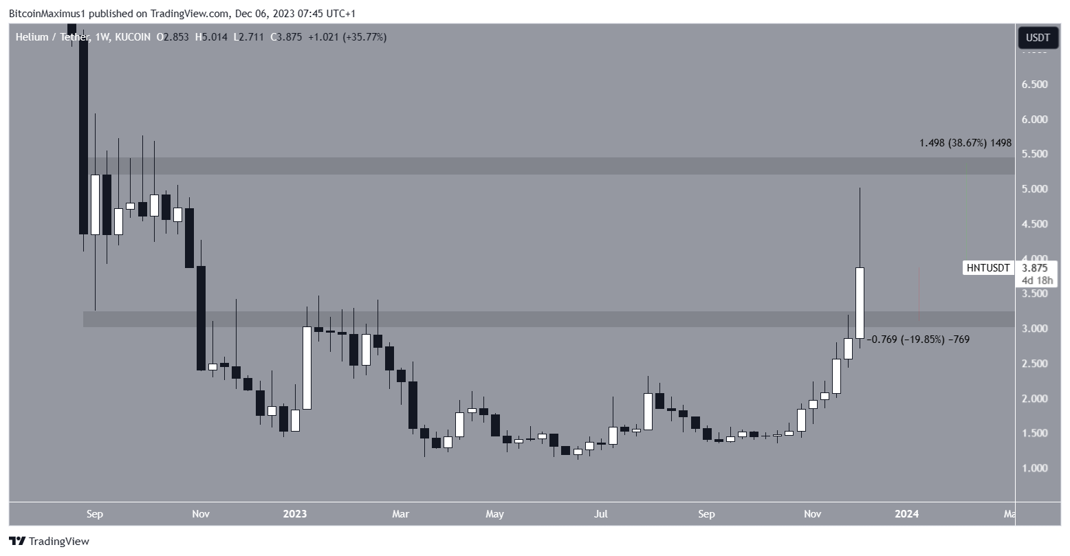 O Bitcoin (BTC) e o valor total do mercado de criptomoedas (TOTALCAP) atingiram novas máximas anuais em 5 de dezembro. O Helium (HNT) saiu de uma área de resistência de longo prazo e também atingiu um novo recorde anual.