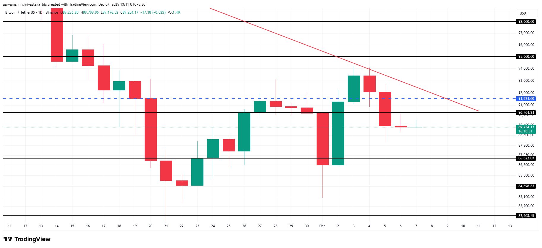 No entanto, se o mercado durante o fim de semana apresentar uma tendência de baixa, o Bitcoin poderá recuar em direção ao nível de suporte de US$ 86.822. Uma queda abaixo desse patamar invalidaria a tese de alta e exporia o BTC a um risco de queda ainda maior.