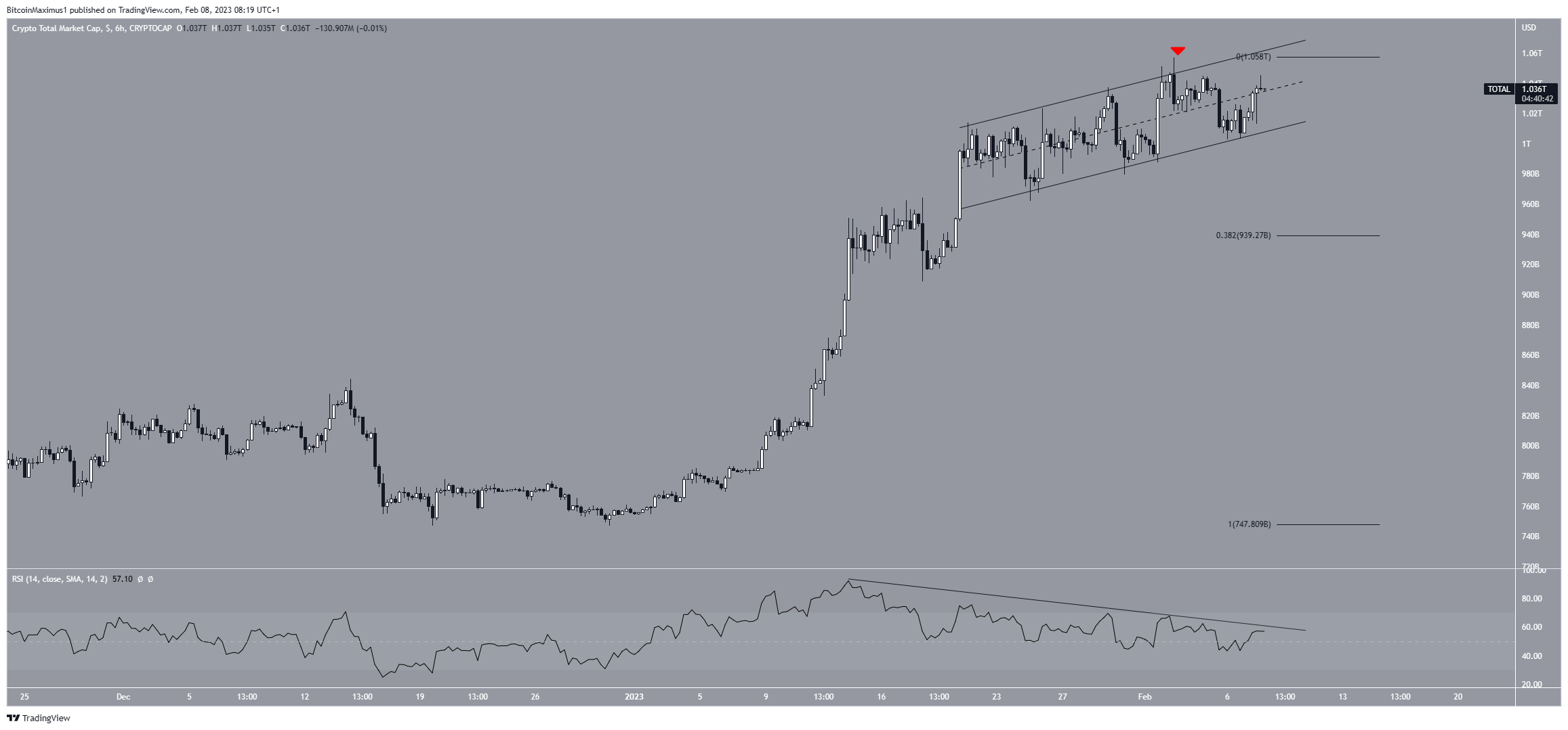 O valor total do mercado de criptomoedas é negociada em um canal paralelo de alta desde 23 de janeiro. Esses canais são considerados padrões de baixa, o que significa que levam a quedas na maioria das vezes.