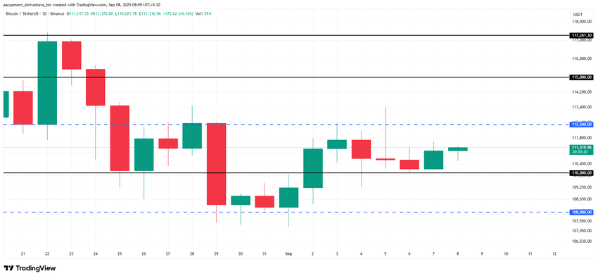 O preço do Bitcoin está em US$ 111.310, mantendo-se acima do suporte de US$ 110 mil após quase testá-lo há 24 horas. O BTC permanece limitado abaixo da resistência de US$ 112.500, deixando os investidores cautelosos enquanto o rei das criptomoedas luta para romper níveis-chave que podem determinar o momentum de curto prazo.