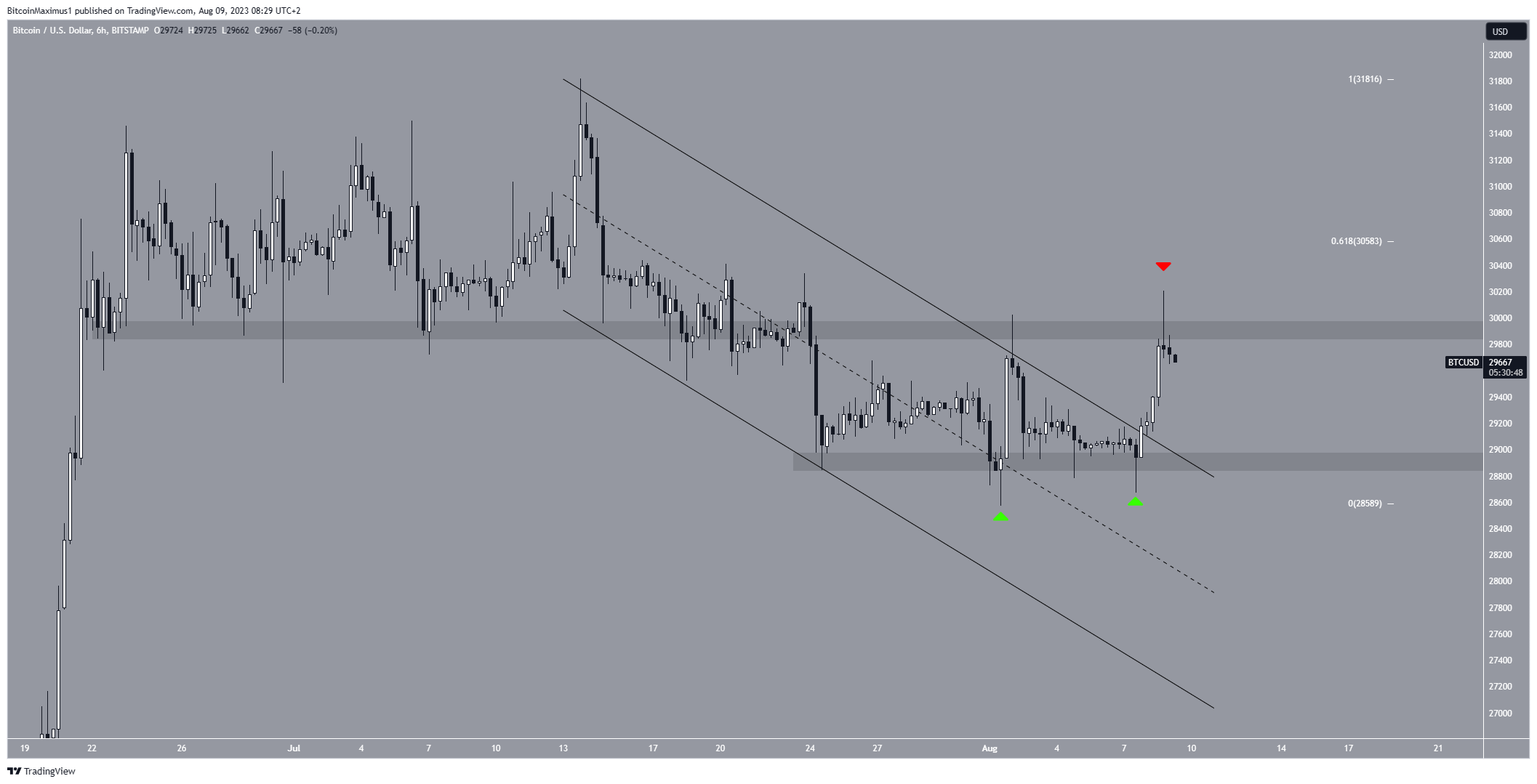 O Bitcoin caiu dentro de um canal paralelo de baixa em 13 de julho. A queda culminou com uma mínima de US$ 28.574 em 1º de agosto. O preço aumentou desde então e criou um candle de alta em 7 de agosto. No dia seguinte, rompeu o canal paralelo, o que é um sinal de que a correção está completa.