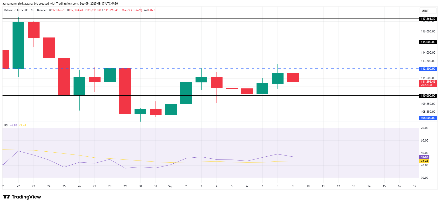 Se os investidores demonstrarem forte confiança, o Bitcoin poderá romper a resistência de US$ 112.500. Uma reversão para o nível de suporte abriria caminho para um impulso rumo a US$ 115 mil. Tal movimento invalidaria a perspectiva de baixa neutra e reacenderia o momentum de alta do BTC.