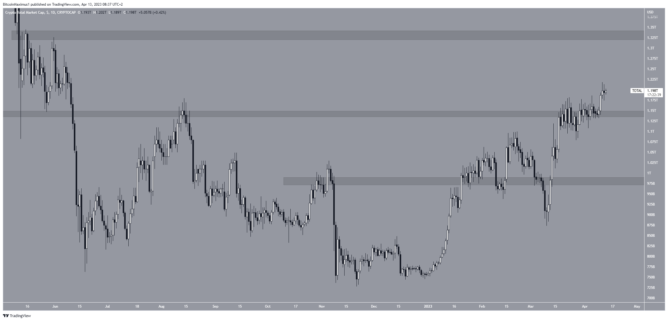 No último domingo (9), o TOTALCAP ultrapassou o nível de resistência de US$ 1,15 trilhão e subiu para um topo de US$ 1,22 trilhão dois dias depois.