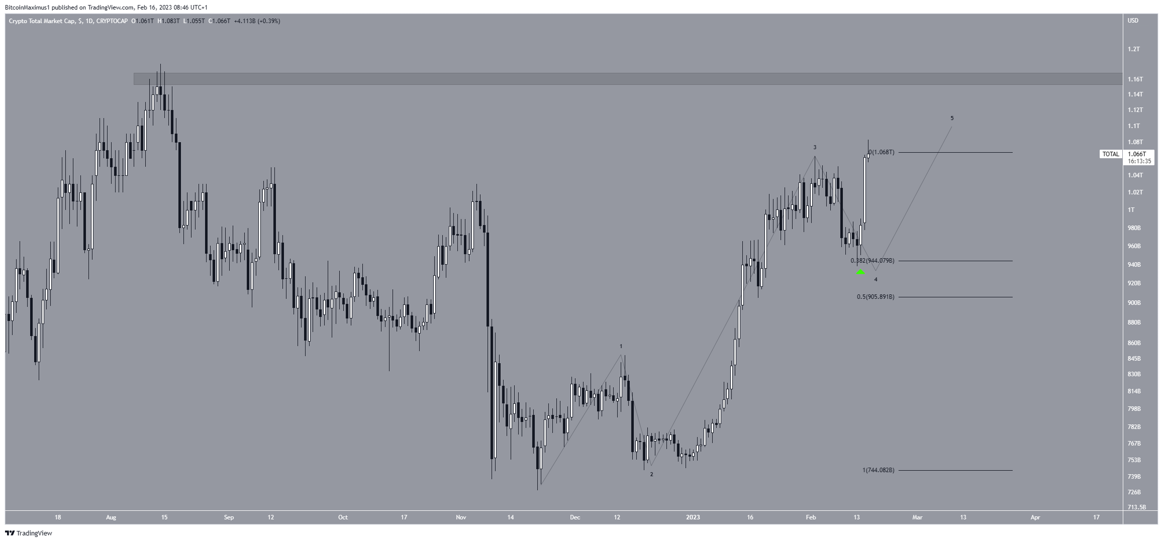 O valor total do mercado de criptomoedas (TOTALCAP) e o preço do Bitcoin (BTC) começaram suas respectivas ondas cinco. Enquanto isso, o Render Token (RNDR) tenta sair da área de resistência de US$ 2,17.
