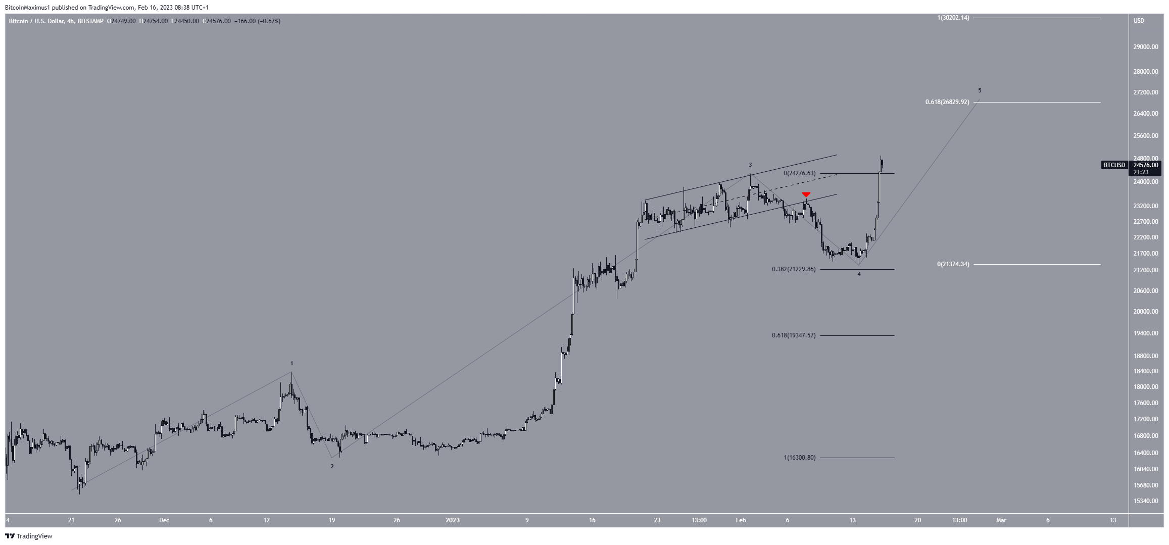 O preço do Bitcoin está em forte alta desde 13 de fevereiro. Atualmente, está na quinta e última onda de um movimento de alta.