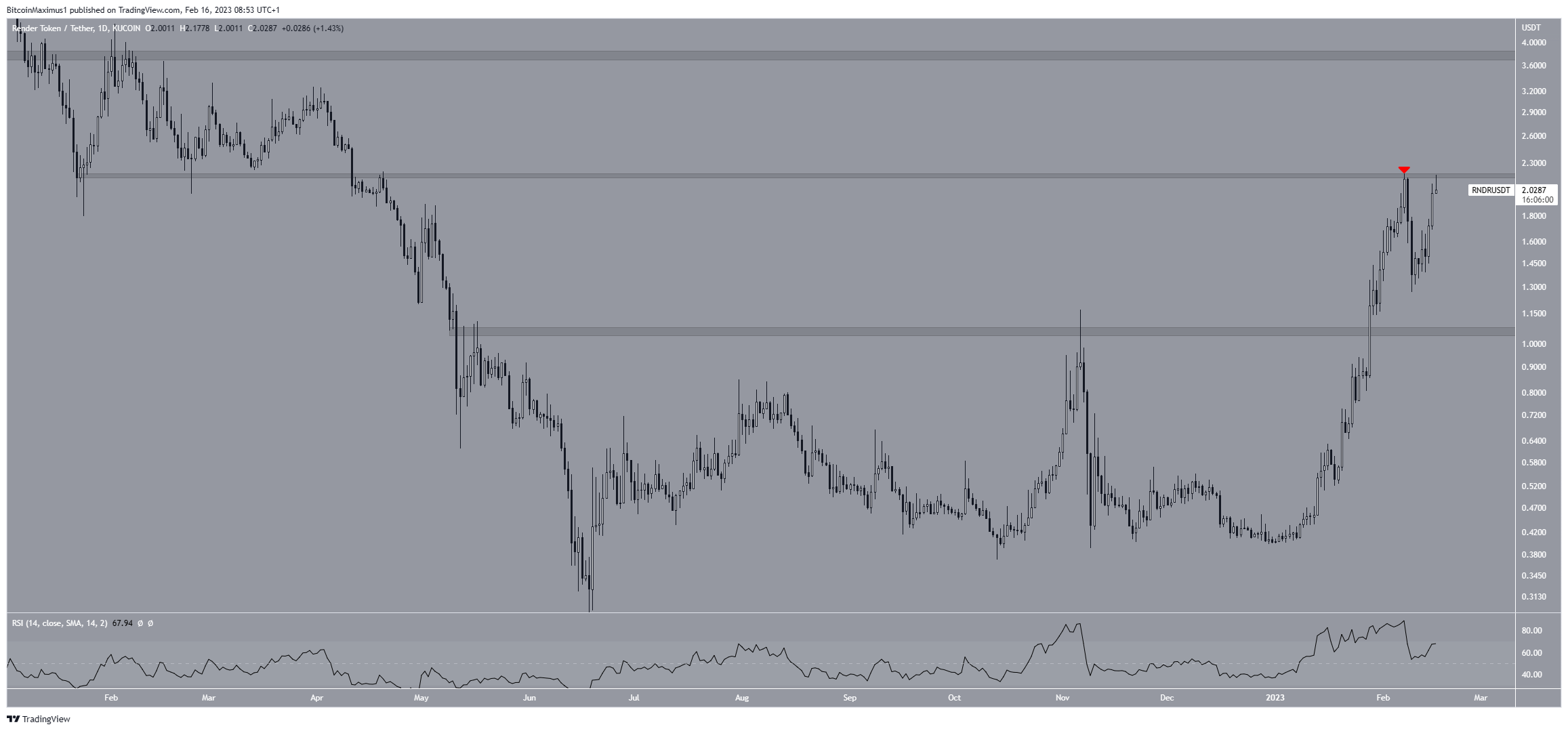 O preço do RNDR está tentando se mover acima da área de resistência de US$ 2,17. Se for bem-sucedido, poderá ir para a próxima resistência em US$ 3,70. Esta seria uma nova alta anual.