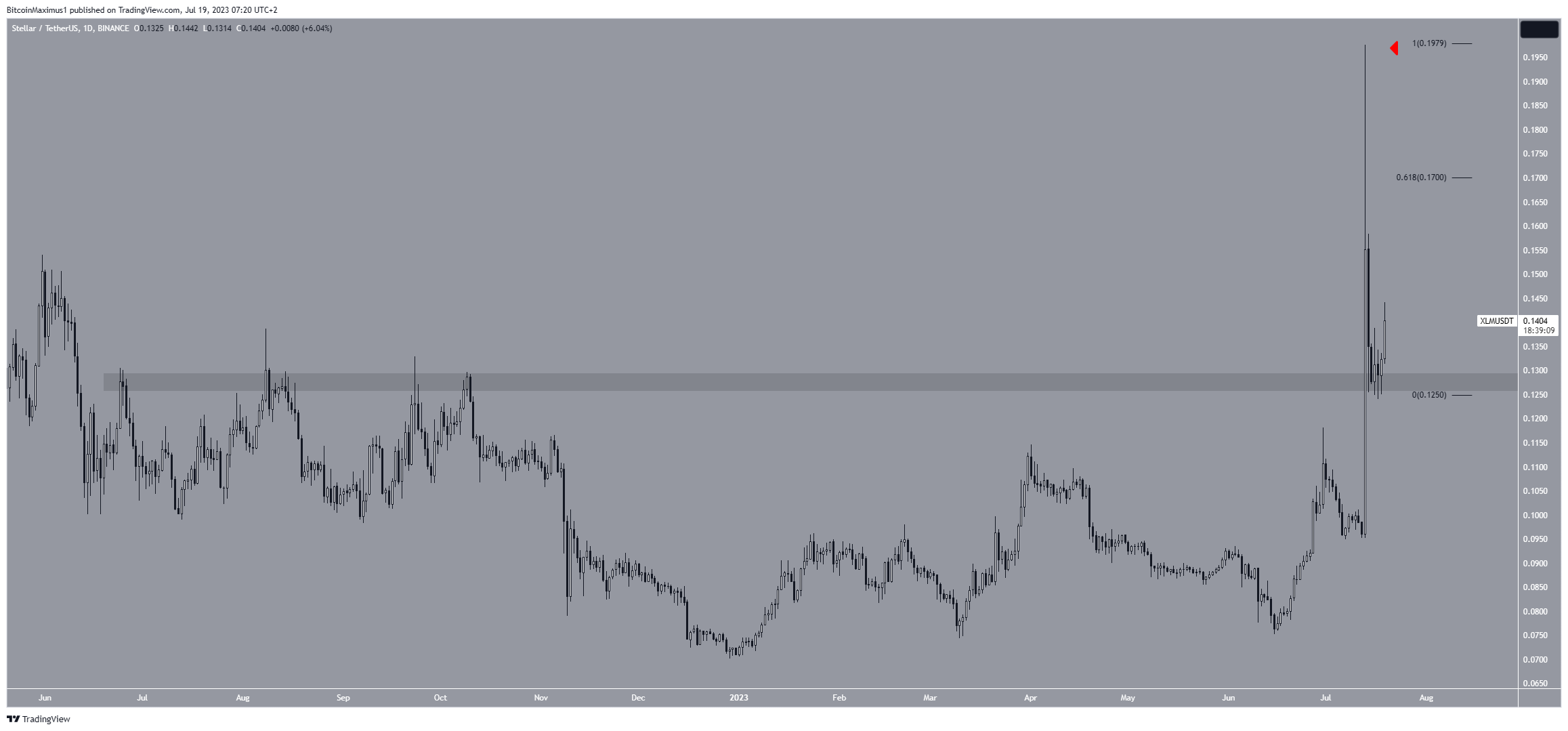 A Stellar atingiu uma nova máxima anual de US$ 0,20 em 13 de julho. No entanto, caiu desde então, criando um pavio superior muito longo (ícone vermelho).