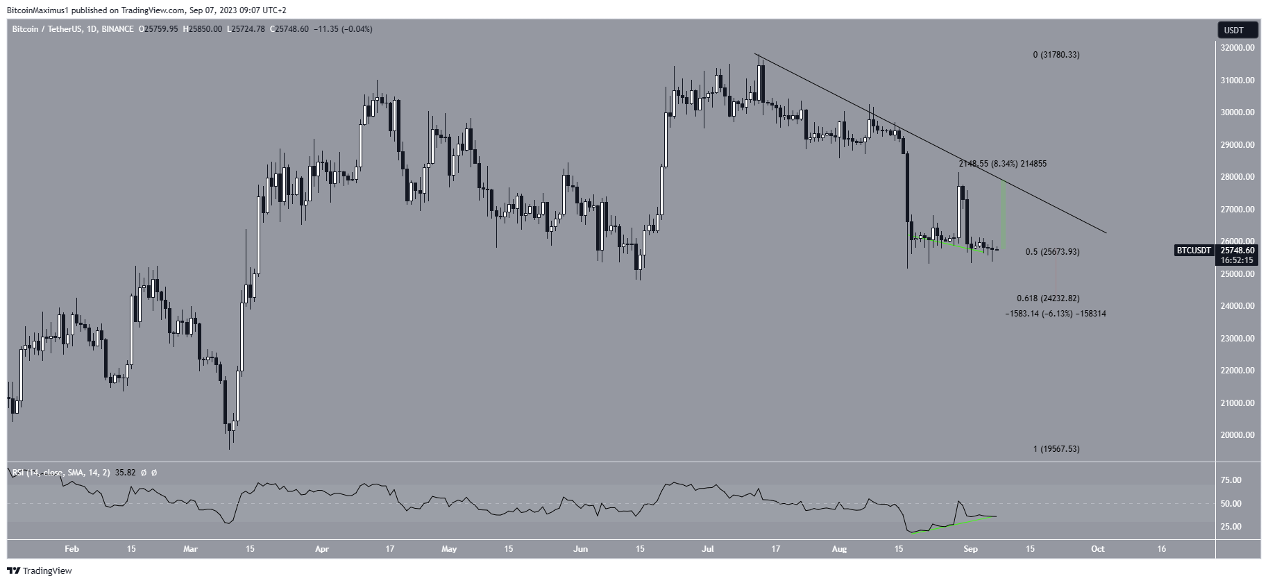 O Bitcoin caiu abaixo de uma linha de tendência de baixa desde 13 de julho. A queda levou a uma mínima de US$ 24.901 em 11 de setembro. O preço aumentou acentuadamente depois, levando a uma alta de US$ 27.409 em 18 de setembro.