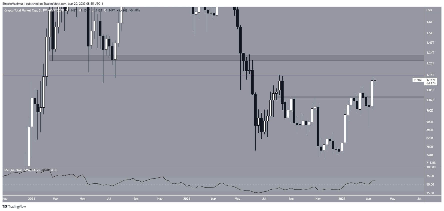 O valor total do mercado de criptomoedas (TOTALCAP) e o Bitcoin (BTC) criaram candle de alta de longo prazo. Enquanto isso, o Conflux (CFX) atingiu uma nova máxima anual.