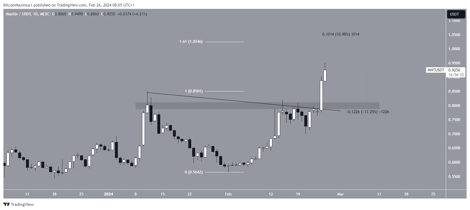 O valor total do mercado de criptomoedas (TOTALCAP) e o Bitcoin (BTC) estão negociados acima de níveis de resistência de longo prazo. O Mantle (MNT) está em tendência de alta.