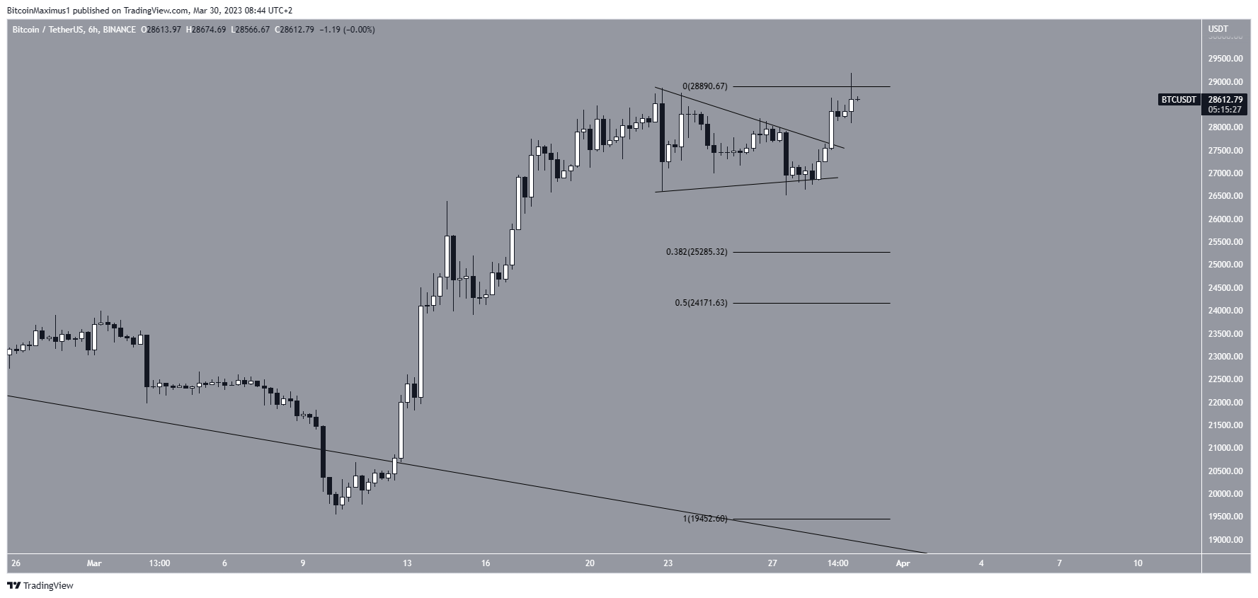 SponsoredO preço do BTC saiu do triângulo na última quarta-feira (29) e atingiu uma nova máxima anual de US$ 29.184 no mesmo dia. Se o movimento de alta continuar, a próxima resistência será encontrada em US$ 32.000. No entanto, se o rali perder força, o preço poderá cair para o suporte mais próximo em US$ 25.285.