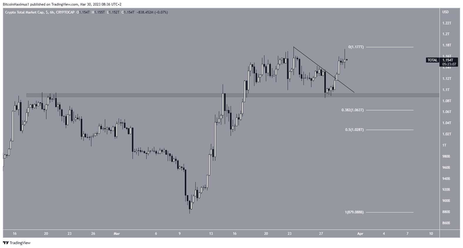 O valor total do mercado de criptomoedas (TOTALCAP) saiu de uma linha de tendência de baixa. Já o Bitcoin (BTC) atingiu uma nova máxima anual, enquanto o Conflux (CFX) saltou em uma importante área de suporte.
