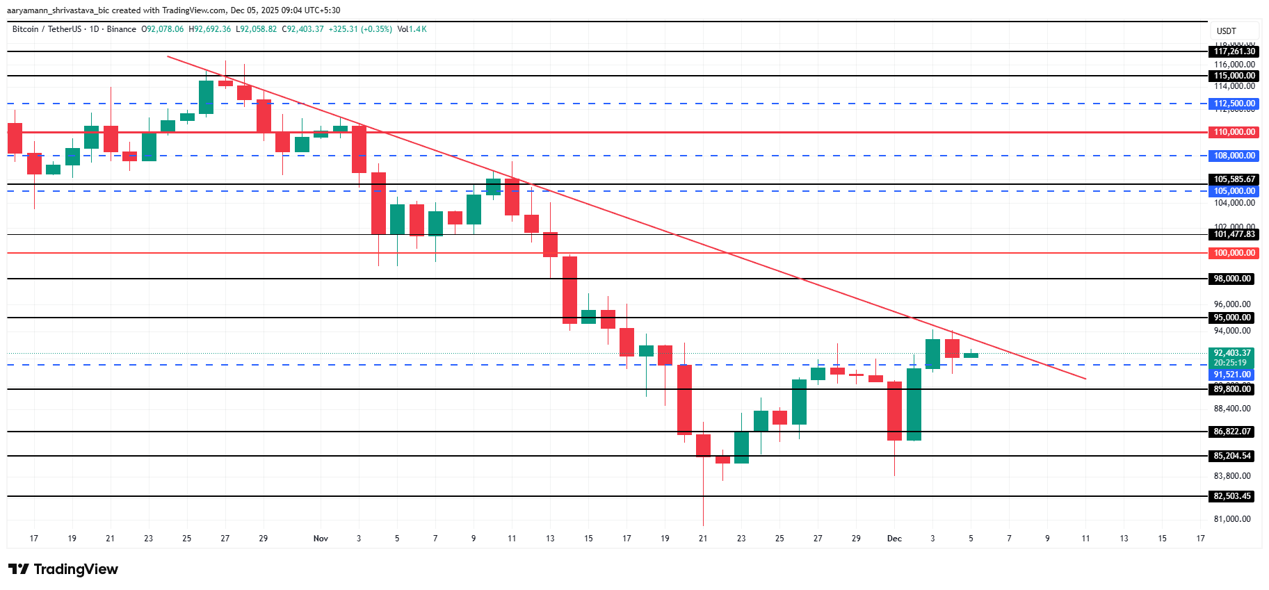 Se o ímpeto de alta se fortalecer, o preço do Bitcoin poderá finalmente romper a tendência de baixa e ultrapassar os US$ 95 mil, aproximando-se dos US$ 98 mil. Uma ruptura acima desses níveis invalidaria a tese de baixa e restabeleceria a estrutura de alta.