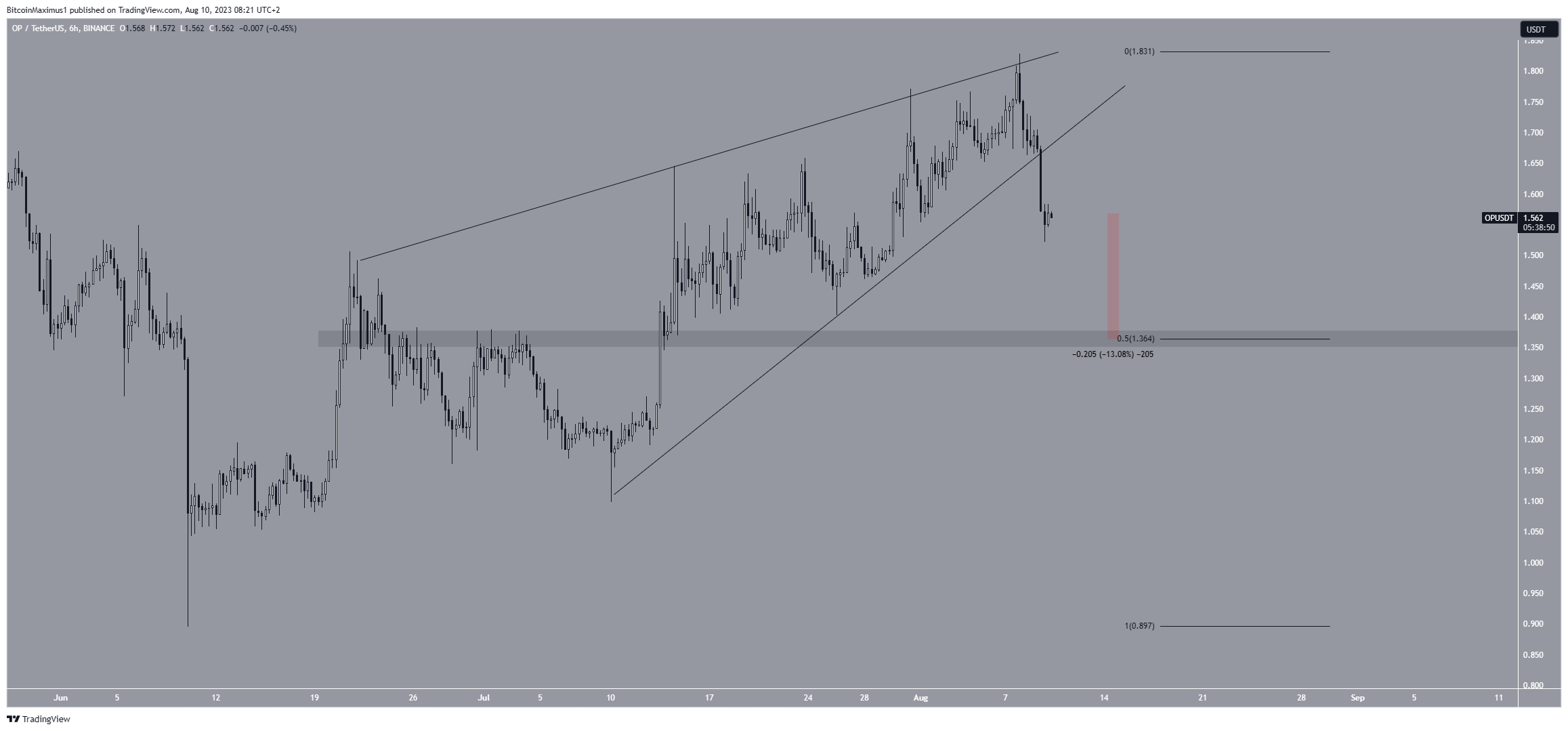 O OP é negociado dentro de uma cunha de alta desde o final de junho. Essa cunha é considerada um padrão de baixa, o que significa que geralmente leva a quedas de preço.