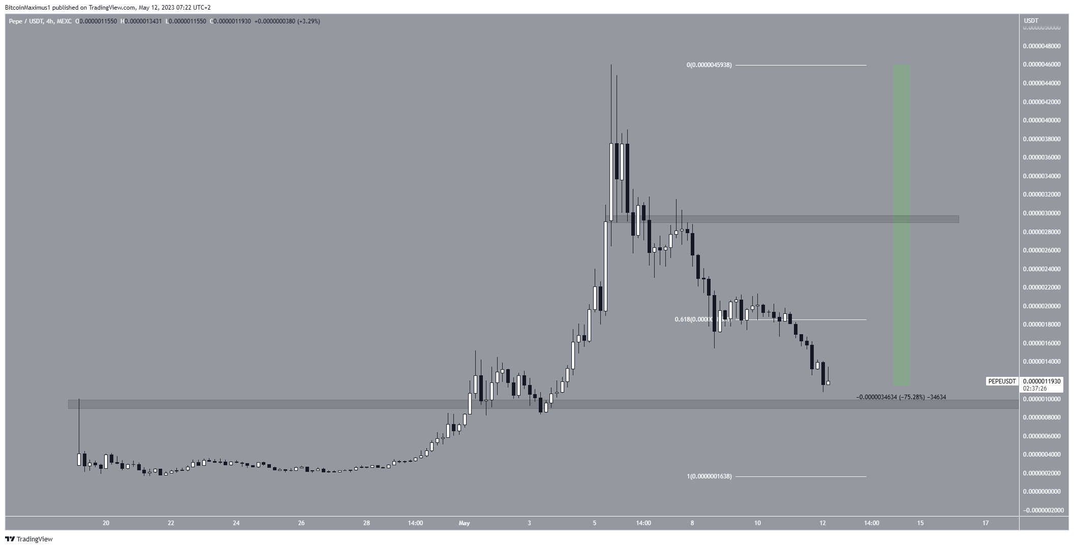 O fundo estava muito próximo do nível de retração de 0,618 de Fibonacci em US$ 0,0000019. No entanto, o preço quebrou depois e atingiu a mínima de US$ 0,0000011. Até agora, caiu 75% desde a sua alta local.