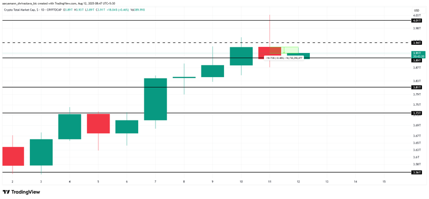 Se as condições macroeconômicas forem desfavoráveis, o TOTAL poderá cair abaixo do nível de suporte de US$ 3,89 trilhões, potencialmente atingindo US$ 3,81 trilhões. Por outro lado, se a perspectiva financeira melhorar, o valor de mercado poderá ultrapassar US$ 3,94 trilhões, testando novamente a marca de US$ 4,01 trilhões.