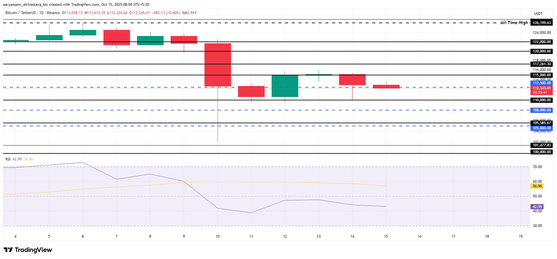 O preço do Bitcoin está em torno de US$ 112 mil, logo abaixo do nível de suporte de US$ 112.500, com os detentores de curto prazo continuando a aumentar a pressão de venda. Essa nova onda de realização de lucros intensificou a volatilidade.
