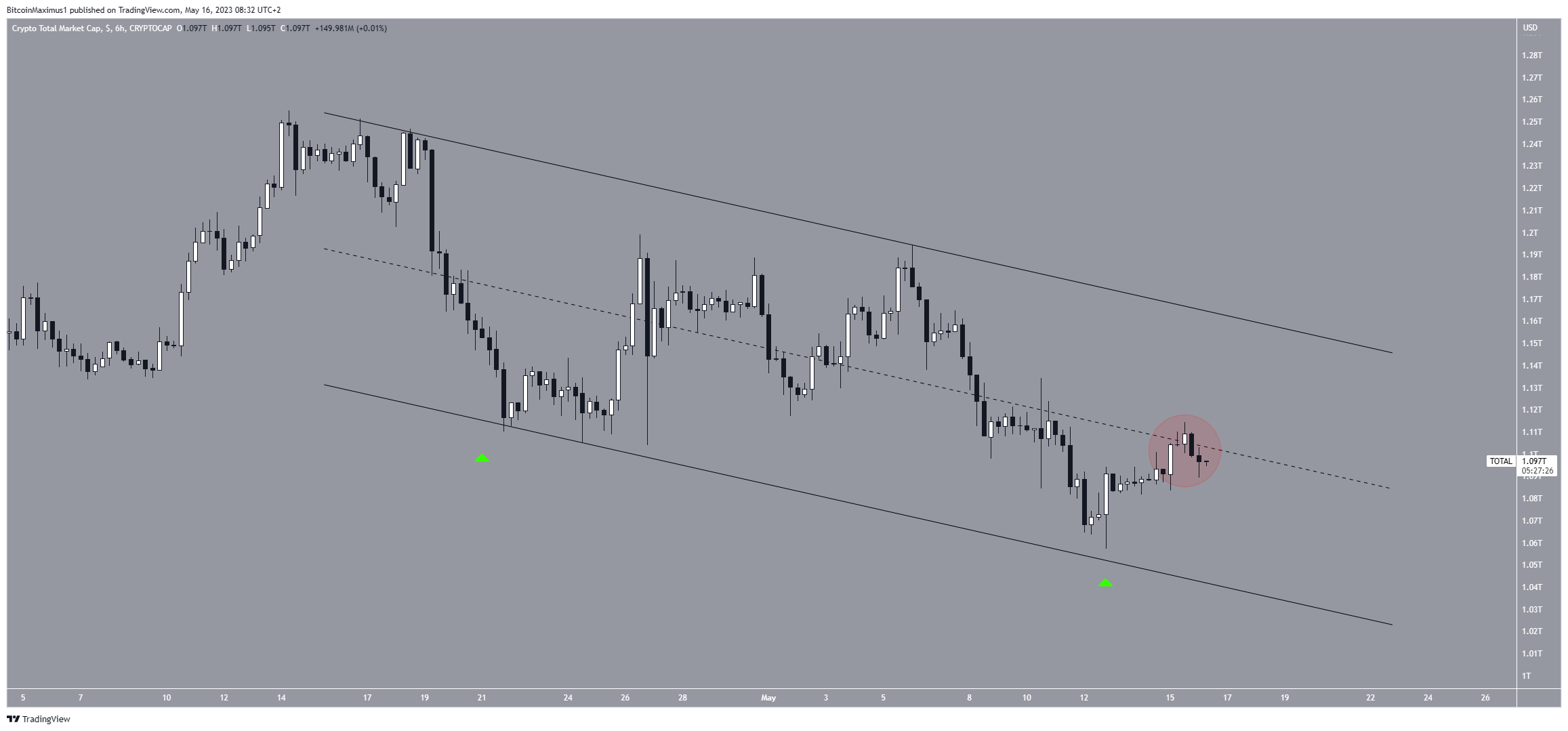 O TOTALCAP caiu em um canal paralelo de baixa em 14 de abril. Este canal é considerado um padrão de alta, o que significa que leva a rompimentos na maioria das vezes.