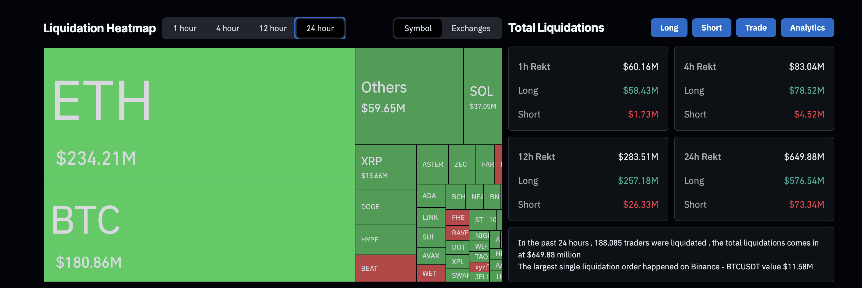 Além das manchetes, a queda do mercado de criptomoedas mostra claros sinais de estresse impulsionado pela alavancagem. Nas últimas 24 horas, mais de US$ 576 milhões em posições compradas foram liquidadas nas principais corretoras. Ethereum e Bitcoin foram responsáveis pela maior parte dessas saídas forçadas, confirmando que a exposição comprada alavancada já estava concentrada antes do início da onda de vendas.