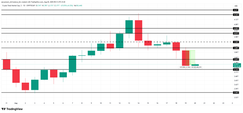 No entanto, se o mercado conseguir recuperar o suporte de US$ 3,81 trilhões, isso poderá desencadear uma recuperação. Uma recuperação acima desse nível abriria caminho para uma potencial alta rumo a US$ 3,89 trilhões, sinalizando uma mudança de impulso e um otimismo renovado no mercado.