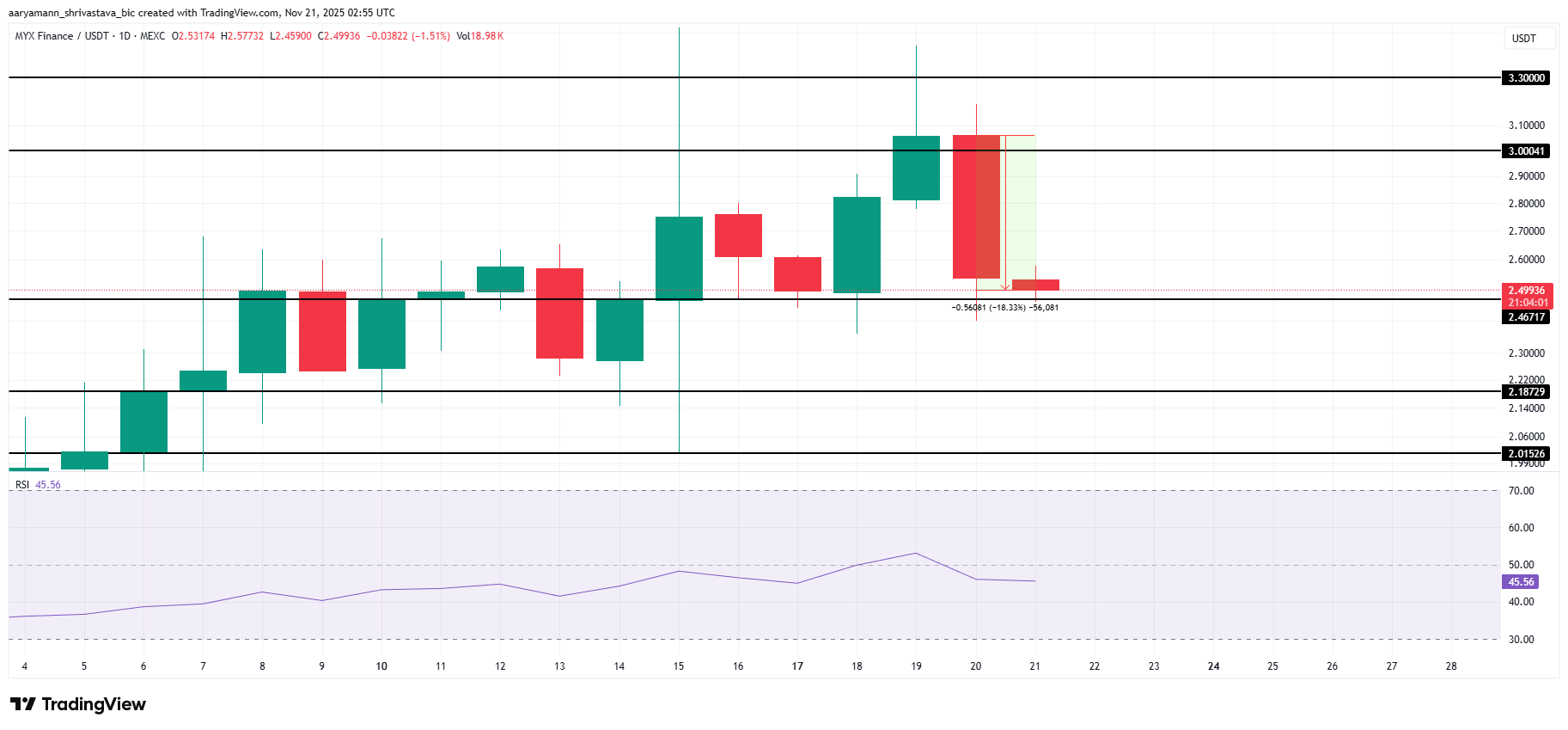 MYX Finance falha ao ultrapassar os 3 dólares.